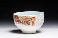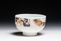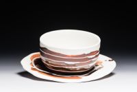 The rich surfaces of her work are accentuated by using fine white porcelain as a carrier of motifs, coloured clays, sand and ash gathered from significant places. Using porcelain in this way, not only connects the work to place, but to the history of porcelain and its capacity to incorporate materiality and meaning.