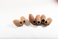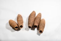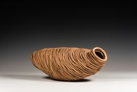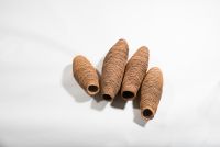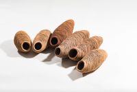 This body of work was inspired by industrious Mud Dauber Wasps Sceliphron laetum, that share my artist studio. I feel quite an affinity to these female insects as they steadily layer up their beautiful nest one daub of mud at a time on the timber floor joist above my head. I have listened to, and watched them craft their nests, filling them with food and tucking their offspring inside. They, like me, make with layers of clay and together we do it through a steady, focused process. I think the form and texture of their structures exquisite. The graduated change in mud used to build the nests has left years of colour samples above my head of local soils and clays. A wasps arrival and industry in my art space is a little gift from nature and I watch over this nursery until their young have left. We’ve been sharing the space for over two decades now and I like to think that with each cycle I’m meeting the next generation of wasps. Daub celebrates and records my appreciation of the architecture, and companionship, of these tiny makers.