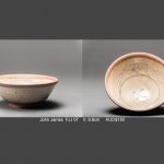 FJJ 13: Small bowl - cut foot local dark clay body with white hakeme slip decoration clear granite glaze