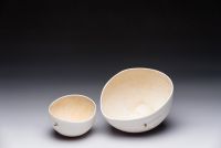 Gathered Threads is a new collection of sculptural vessels that explore the notion of memory and connection. They are made from two materials – porcelain and thread.